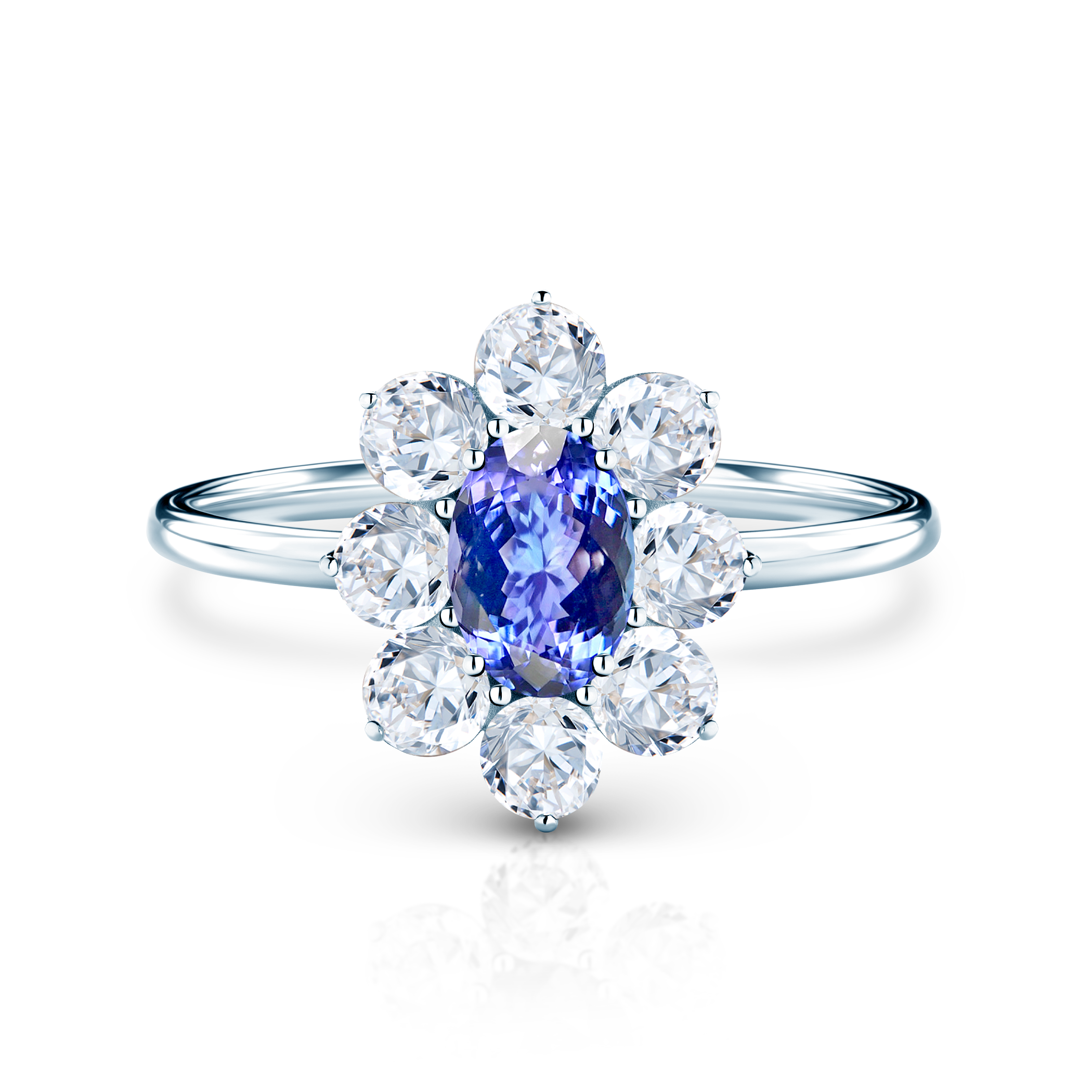 SAVICKI RING Collection | Halo Engagement Ring: white gold, tanzanite, white sapphires
